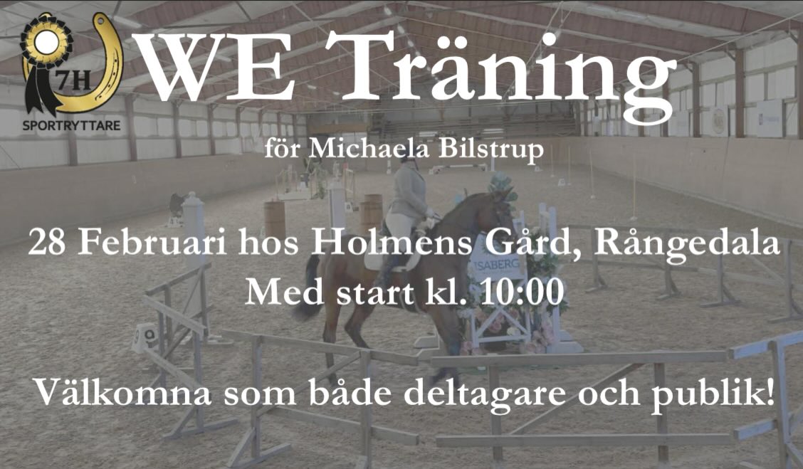 WE- Träning Sjuhärads sportryttare 28.02.2026 We-Träning hos Sjuhärads Sportryttare 28/2. Mer info finns på deras Facebook.